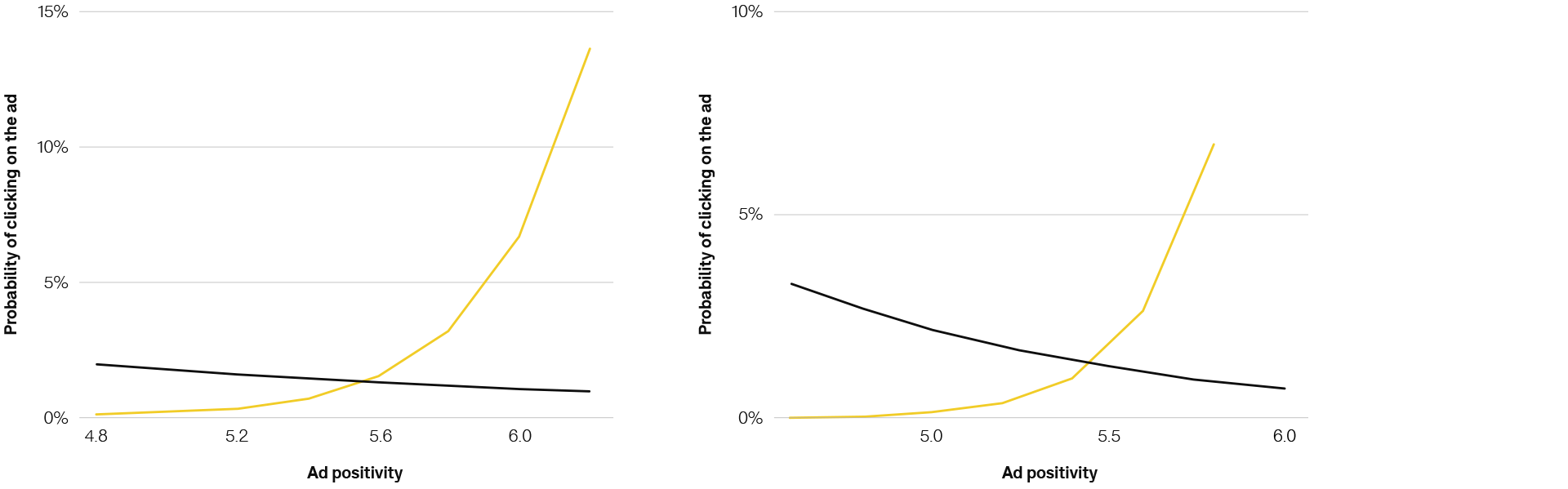 Positive ads are clicked more on positive websites that make people feel in control. Less positive ads get more clicks on less positive, restrained websites that give people a low sense of control.