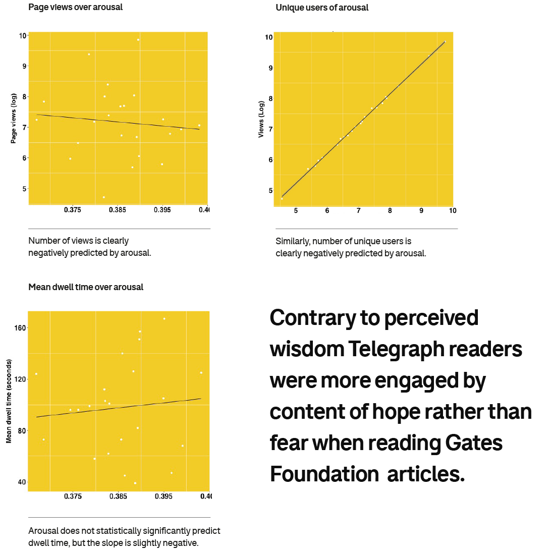 Using VAD we analysed the Gates Foundation Global Health Challenges projec by The Telegraph. By correlating the impact of each article, measured by views, dwell time and number of unique users, with the emotional signature of the content, we defined the precise make up of content which connected.