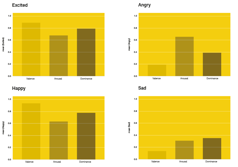 Texture has a proprietary lexicon that assigns a VAD score to all the common words in English; moreover, we are growing it on a continuous basis. This allows us to instantly profile the emotional character of a piece of text.